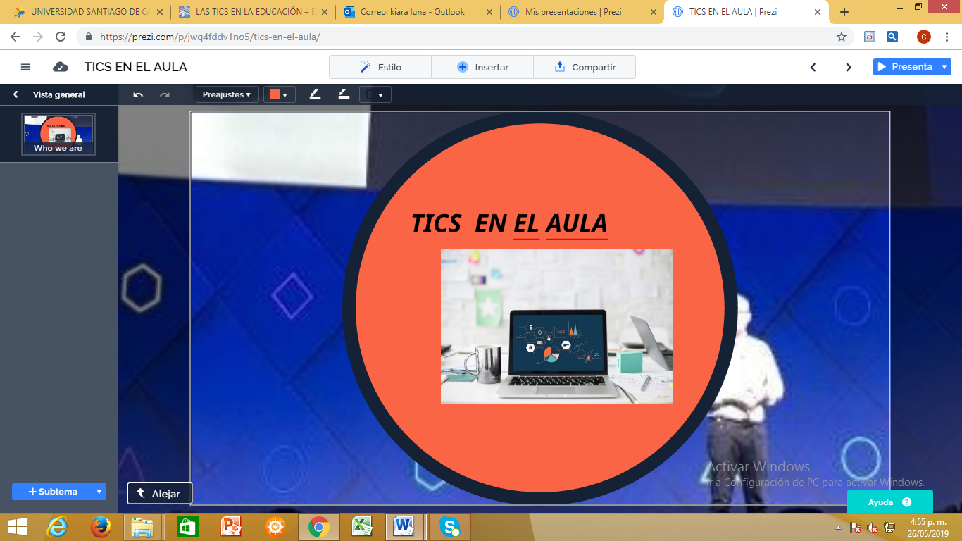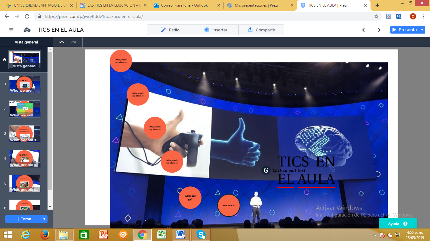 Las TIC en el Aula (Prezi) https://prezi.com/p/jwq4fddv1no5/tics-en-el-aula/ Compártelo: Compartir en X (Se abre en una ventana nueva) X Comparte en Facebook (Se abre en una ventana nueva) Facebook Me gusta Cargando...